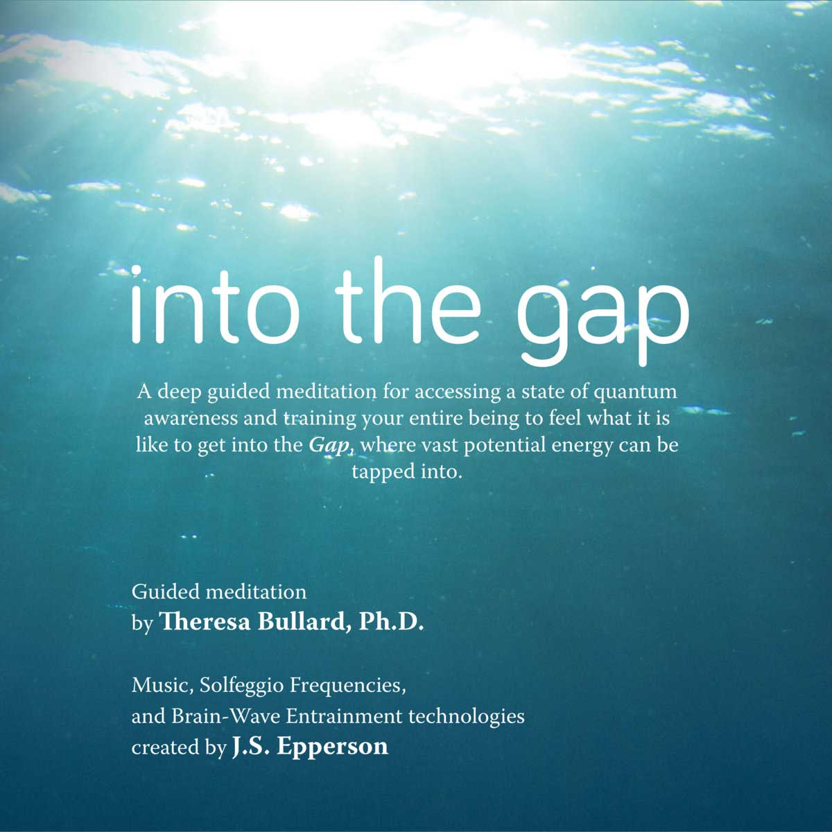 This is a 49-minute meditation that guides you deeply into the Gap while entraining you to expanded states of awareness. Inspired by an understanding of Quantum Physics, many aspects of the guided imagery by Theresa Bullard and the musical compositions by J.S. Epperson were specially designed to bring you into a sustained experience of being in the Gap, or the quantum space between, where all possibilities become accessible.
